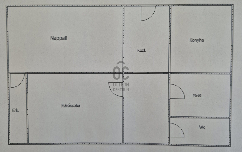 -a lakás 56 nm-es, amelyben 2 szoba, 1 konyha,, 1 fürdőszoba, 1 WC helyiség kapott helyet