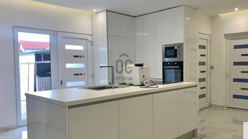Az ország egyik legnépszerűbb fürdőhelyén, Bükön, a termálfürdőtől 3 km-re kínálunk eladásra egy nappali + 3 szobás, 87 nm-es, földszinti, szigetelt lakást 80 nm-es kertkapcsolattal, 25 nm-es terasszal és 20 nm-es előkerttel. A négylakásos társasház egy csendes, biztonságos zsákutcában áll a település központjában, minden szórakoztató-, kereskedelmi-, és közintézmény pár lépésen belül elérhető. A lakás kifogástalan állapotban van, teljes műszaki és esztétikai felújításon esett át, hőszigetelt műanyag nyílászárókkal, redőnnyel, rejtett, színváltós LED-világítással, prémium minőségű konyhabútorral, gépekkel. A fűtést a közös pincében elhelyezett gáz-cirkó kazán biztosítja, a hidegburkolatú helyiségekben padlófűtéses, a melegburkolatú helyiségekben radiátoros hőleadással. A lakás minimális rezsiköltséggel üzemeltethető, közös költség nincs, a társasház közös udvarán egy saját autóbeálló is tartozik hozzá.