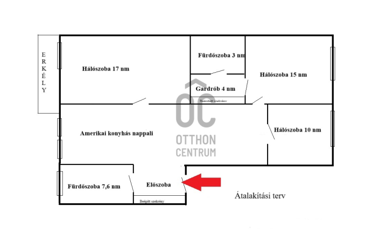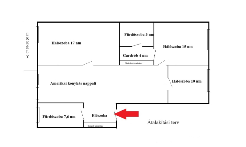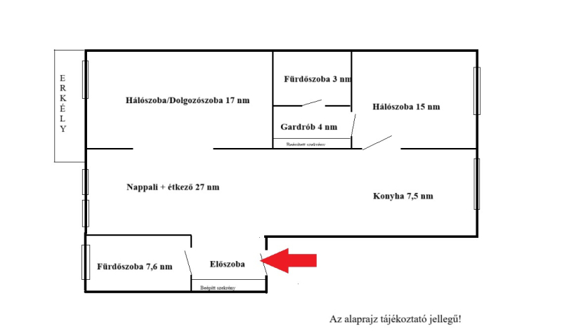 - nappali + két hálószoba (könnyen kialakítható még egy szoba)