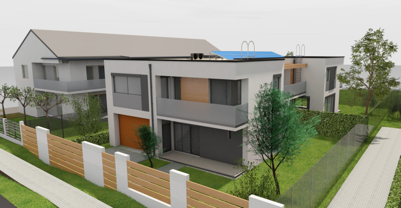 Hőszivattyú, fan coil, napelem, elektromos alumínium redőnyök, elektromos kapuk, riasztó, üveg korlátok, hangulat világítások, H tarifa. Épített utcafronti kerítés. Választható extra burkolatok, szaniterek, csaptelepek, belső ajtók.