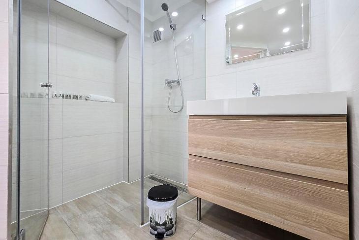 A lakás légkondicionált, 2 külön nyíló hálószobával, egy nappalival, teljesen felszerelt konyhával (mikrohullámú sütő, kávéfőző, mosógép) és zuhanyzós fürdőszobával rendelkezik. Az ingatlan saját bejárattal és lifttel megközelíthető.