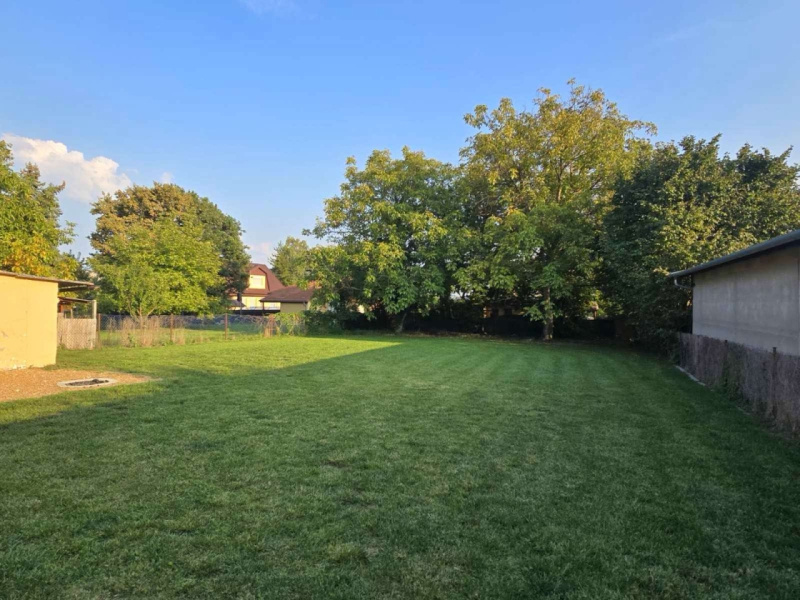 -Délnyugati fekvésű, fedett terasz, gondozott, sík, 957 m2-es kert, 2 nagy diófa, cseresznyefa, bokrok