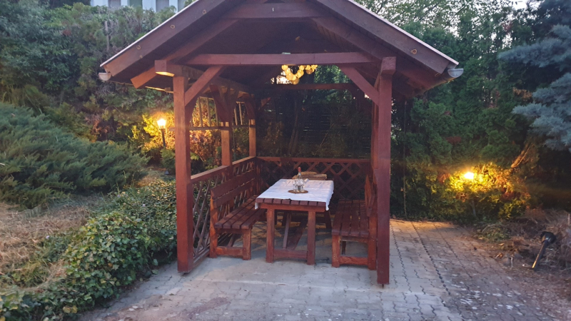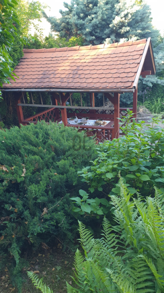 gondozott kert, szalonnasütő, bográcsozó, fedett kiülő