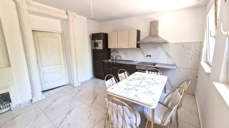 There are plastic insulated windows and the kitchen furniture is already installed.