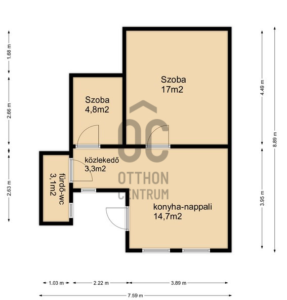Szobák száma: 2 (a szobáknak nincs ablaka)