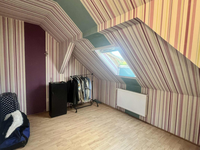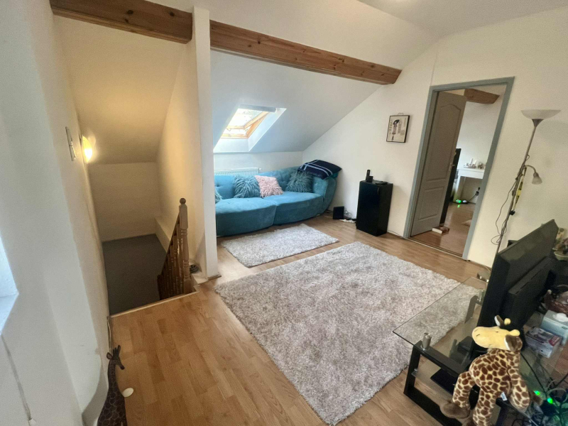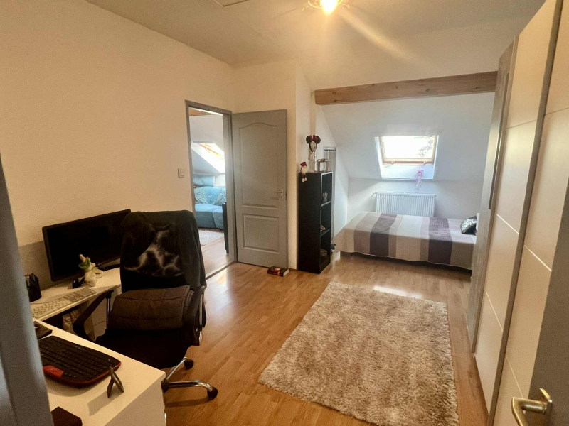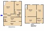 Emelet: 1 nappali innen nyílik a 2 külön nyíló szoba, szobából nyíló fürdőszoba wc-vel (sarokkáddal). (nappali és a szoba délkeleti, fürdőszoba és a másik szoba északnyugati tájolású.)