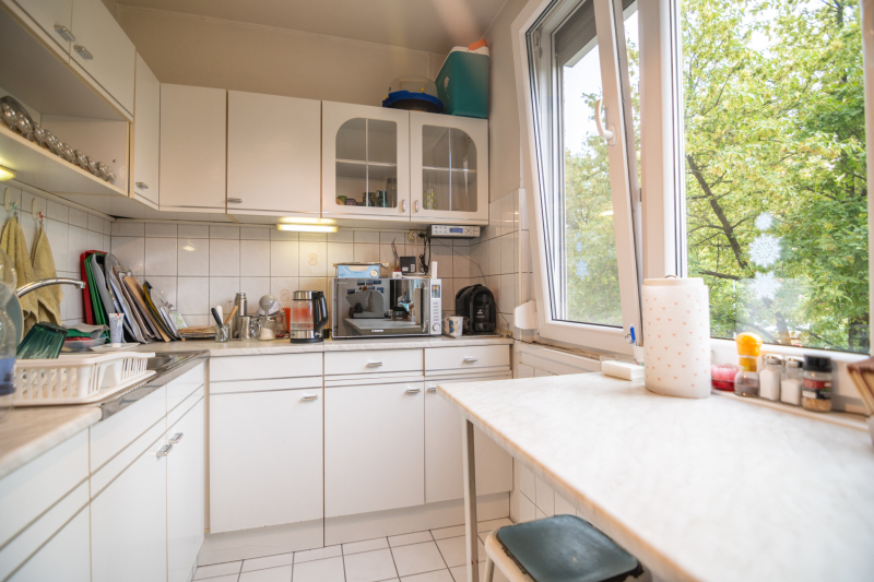 A parkra és utcára néző ablakok egész nap szép világossá teszik az otthont az ott lakóknak.