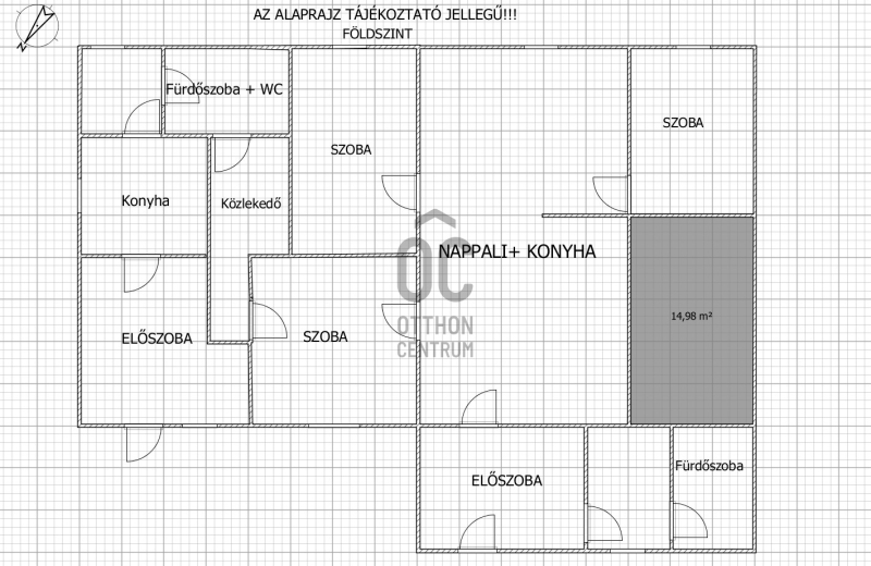 A földszinti lakrészben található egy előszoba, abból jobbra egy fürdő és WC, egyenesen haladva egy 45 nm-es amerikai konyhás nappaliba jutunk, innen nyílik a három hálószoba.