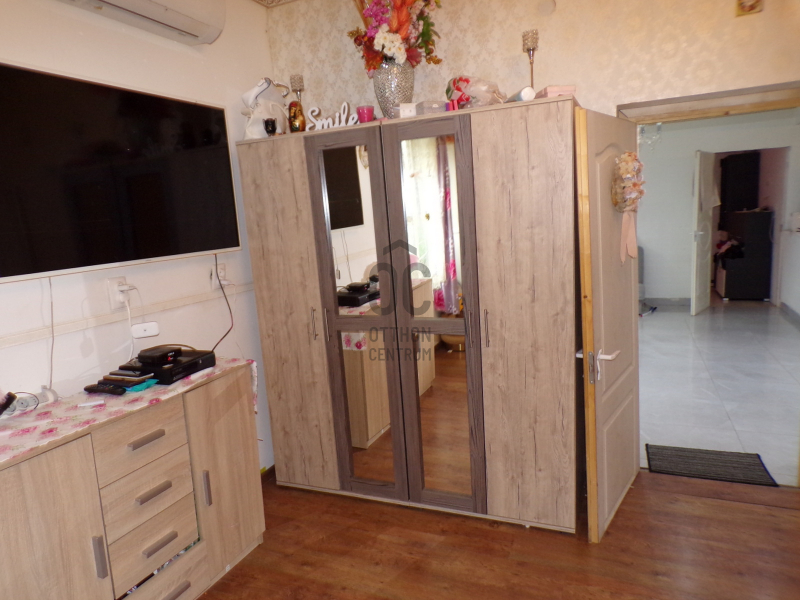 A másik lakás földszinti bejárattal rendelkezik, de két szinten helyezkedik el. A földszinten egy előszoba, konyha, fürdő és WC található,