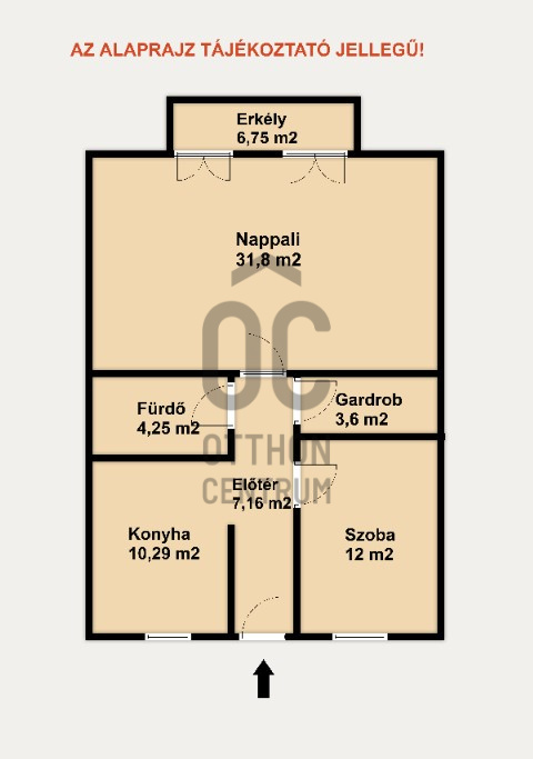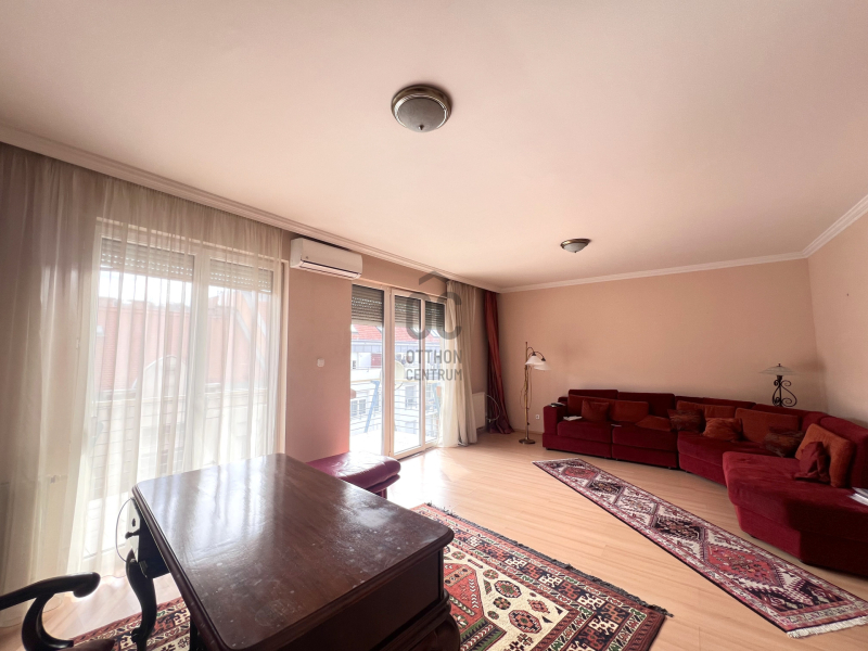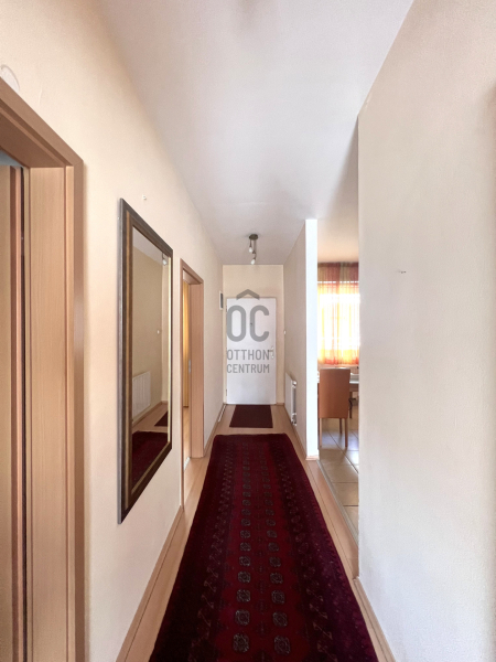 Tágas nappali (31,8 nm), külön nyíló hálószoba, külön gardrób, nagy konyha étkezővel