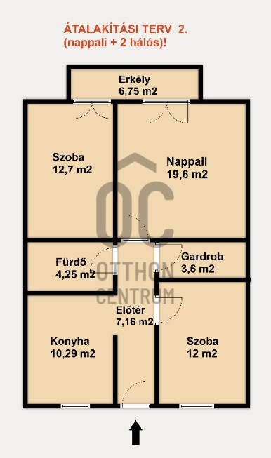 Eredetileg 3 szobás (nappali + 2 hálós), jelenleg 2 szobás (amely a korábbi nappali és az egyik hálószoba közötti fal egybenyitásával lett kialakítva) , de könnyedén átalakítható amerikai konyhás nappali + 3 hálószobássá – így befektetésnek is kiváló, vagy nagyobb családok, fiatal párok részére is ideális otthon lehet!