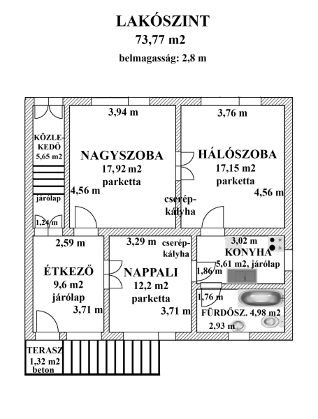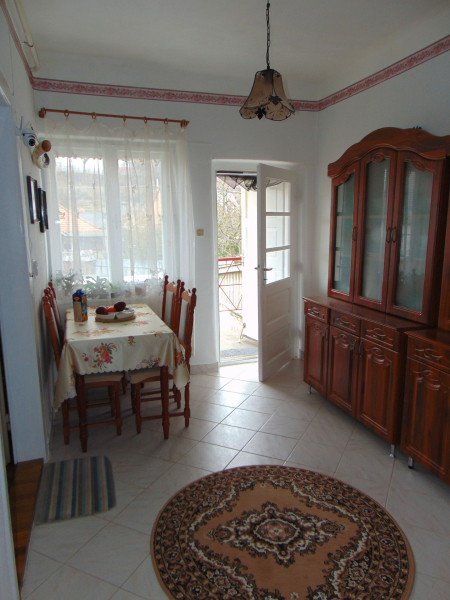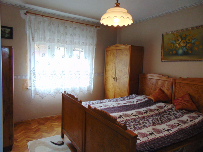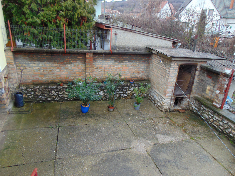 Eger északi részén, a Rác hóstya városrészen, az Árnyékszala utcában kínálunk eladásra egy kiváló adottságokkal rendelkező, árkategóriájában egyedi ajánlatnak számító, kertkapcsolatos, szuterénes családi házat, amely kis ráfordítással meghitt hangulatú otthonná varázsolható. A ház és a melléképületek teljes alapterülete 155 m2, amelyből 94 m2 az összkomfortos lakótér. Ebből 73,7 m2 található a lakószinten és 20,3 m2 a szuterén kertre néző részén. A lakószinten, az utca felé két tágas, parkettás, 17 m2-es, délnyugati tájolású szoba tekint, melyek világosak, barátságosak, megalapozva a ház otthonos légkörét. A két helyiség között ódon hangulatú cserépkályha egészíti ki a gázkonvektoros fűtést. A kertre néz az étkező, ahol a teraszajtó található, és egy kisebb nappali-tévészoba, amely szintén rendelkezik egy nagyméretű cserépkályhával. A telek adottságai miatt ez a két helyiség magasan kiemelkedik a kert szintjéből, ami tágas kilátást biztosít a környékre és a Ráchegyre. A lakószinten ezen felül az előszoba, valamint a konyha és a fürdőkádas fürdőszoba-wc találhatóak, mindkettő kis szellőzőablakkal rendelkezik.