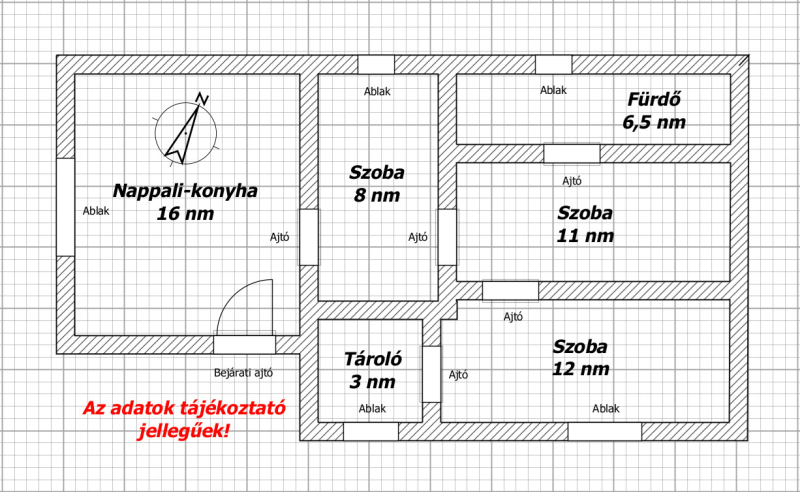 Belépve egy konyha-nappaliba érkezünk, ahonnan 3 szoba, egy fürdőszoba és egy tároló /gardrób/ juthatunk, a kellemes hőérzetről hűtő-fűtő klíma és műanyag nyílászárók gondoskodnak!