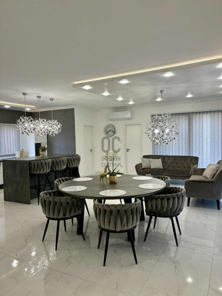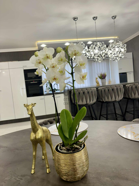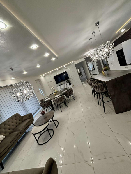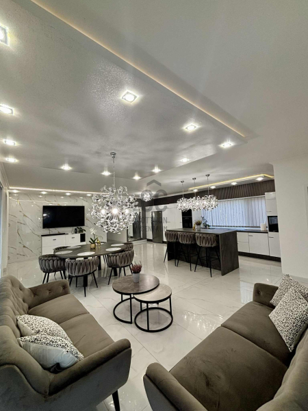 A tágas, közel 50 m²-es amerikai konyhás nappali-étkező az otthon központja, ahol bőséges természetes fény és nyitott tér fogad.