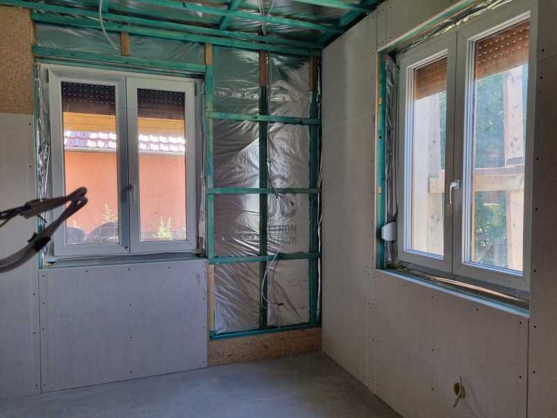 - 10 cm vastag aljzat szigetelés, + 15cm főfalszigetelés+ 15cm homlokzati szigetelés