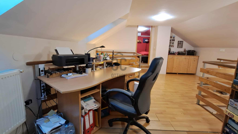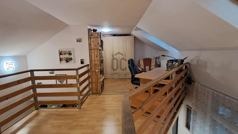 Az ingatlan 56 m² alapterületű, amelyet egy 34 m²-es galéria egészít ki, ezáltal tágas és praktikus elrendezést biztosít. A földszinten nappali, egy szoba és két félszoba található, míg a galériás tetőtérben hálószoba, dolgozósarok és gardrób került kialakításra. A fürdőszoba és a WC külön helyiségben kapott helyet, így a mindennapi használat is kényelmes. 2014-ben teljes körű felújítás történt: megújult a tető, a homlokzat, valamint a víz-, villany- és fűtésrendszer is. Így az ingatlan modern műszaki állapotban várja új lakóit.