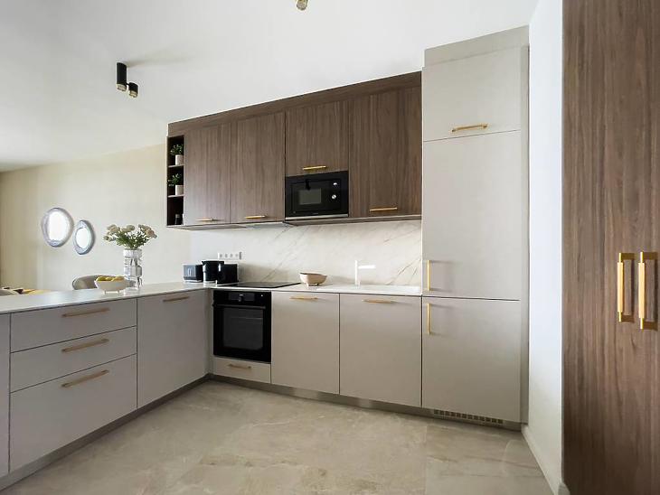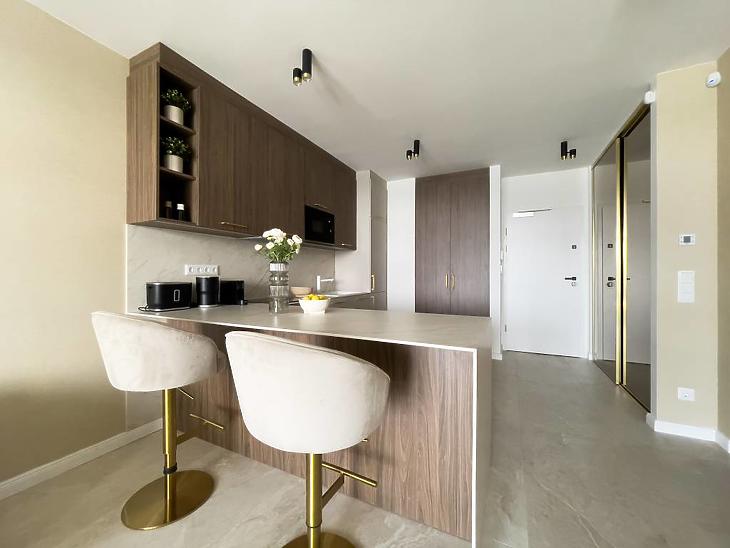 Belsőépítész által tervezett, letisztult, modern design, prémium bútorokkal és rengeteg beépített tárolóval