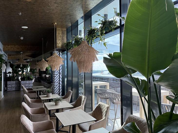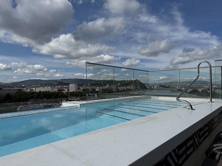 12. emeleten 38 méter hosszú, üvegfalú infinity medence és Skybar