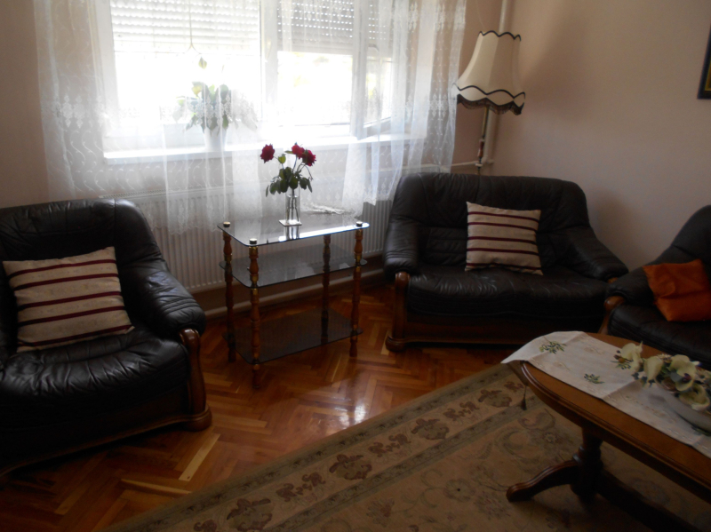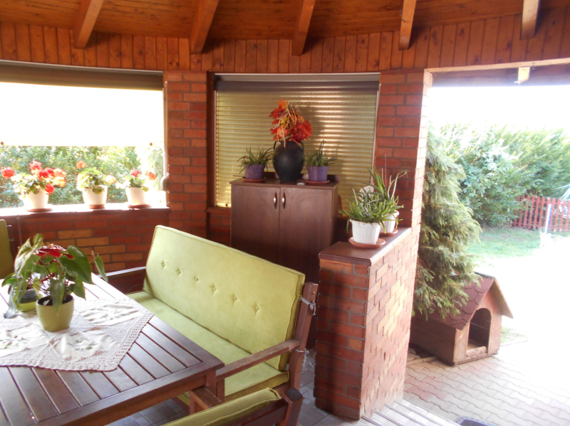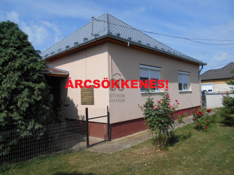 Megvételre kínálok Dögében, központhoz közeli csendes mellékutcában, egy 1980 -ban szilikátból épült, cserepes lemezzel fedett, szép állapotú családi házat 1145 nm -es, 65 x 11 méteres utcafronttal rendelkező saroktelken. A kívül hőszigetelt ingatlan belső elrendezése átgondolt, a két különnyíló szobáját és a tágas nappalit keményfa parkettával, a külön wc-t fürdőszobát járólappal, a konyha-étkezőt és a közlekedőt laminált padlóval burkolták. A külső nyílászárókat már hőszigetelt műanyagra cserélték, az ablakokat redőnnyel szerelték fel. A melegről központi fűtés gondoskodik, ami gáz és vegyes tüzelésű kazánnal is üzemel, de található az épületben egy hűtő-fűtő klíma is. Az udvaron fúrt kút és egy külön épületrész található, a kazánokkal, vizesblokkal (wc, illetve tusoló) valamint nyári konyha és műhely, továbbá egy különálló garázs is. A telek méretéből adódóan kettéosztható, a végébe egy második garázst építettek külön bejárati kapuval. A vételár tartalmazza a bútorzat egy részét is.