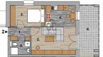 A lakások 48-50 m2-sek. A KONFORT érdekében a nappalik VALÓDI ÉLŐTERET kínálnak, leválasztható konyhával vagy AMERIKAI TÍPUSÚ elrendezéssel, amely ideális a modern életvitelhez egy hálószobával. Az ergonomikus kialakítású fürdőszobák korszerű gépi szellőzéssel rendelkeznek, garantálva az optimális komfortérzetet. A lakások terasszal rendelkeznek.