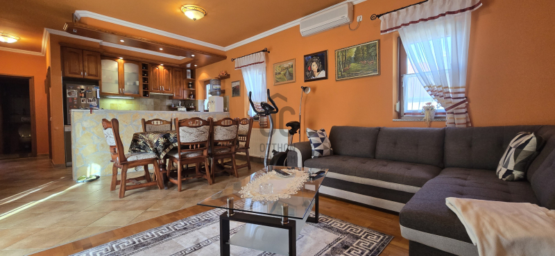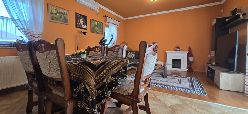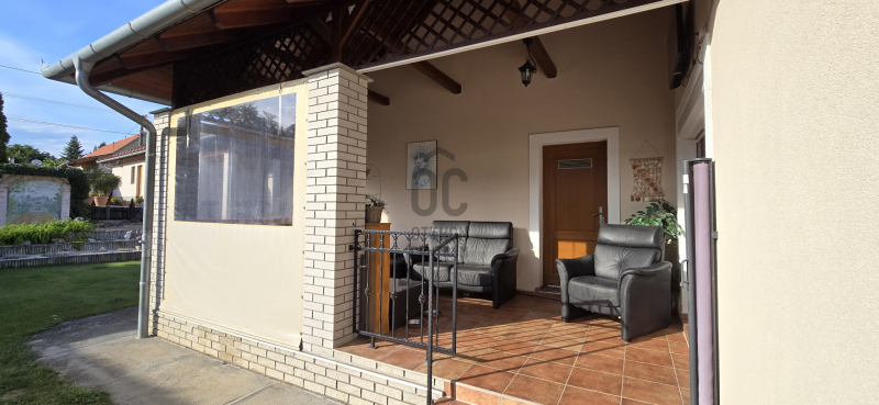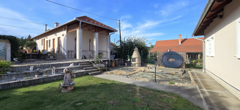 -maga a ház, mely téglából épült 2005-ben, s amelyen már felújítás is történt, és ami ideális méretű otthona lehet egy családnak a három külön nyíló szobájával; két fürdőjével; tágas – világos közösségi terével; hangulatos fedett teraszával; gondozott udvarával; medencéjével