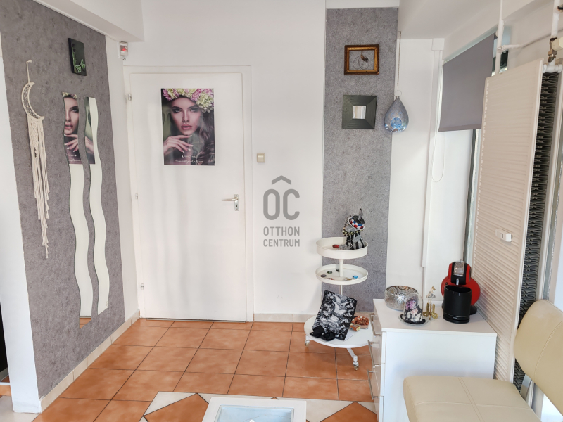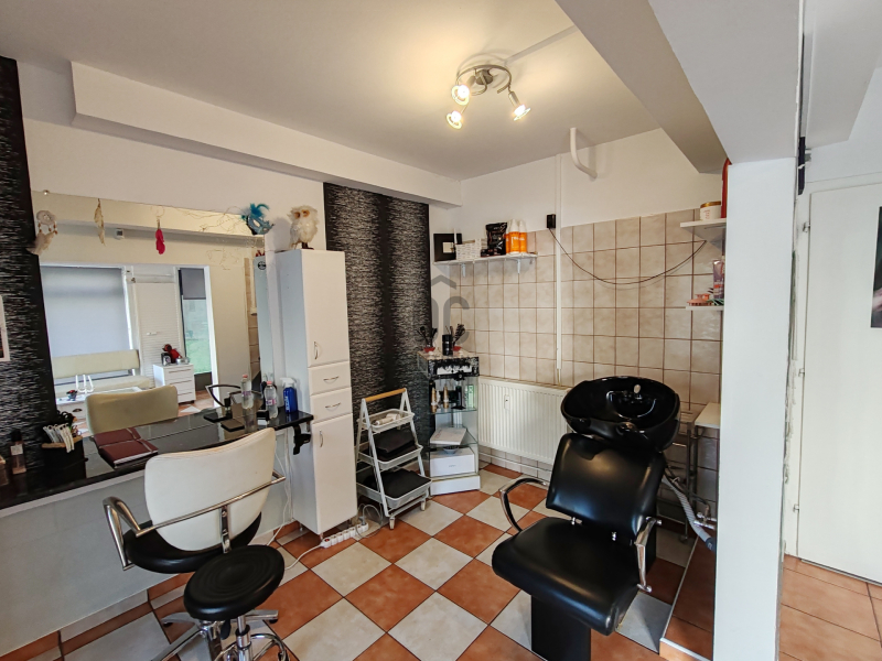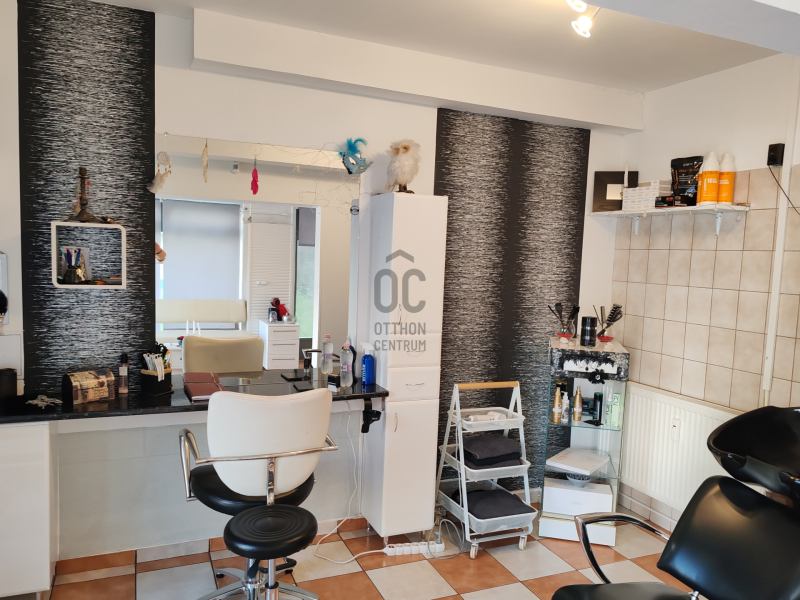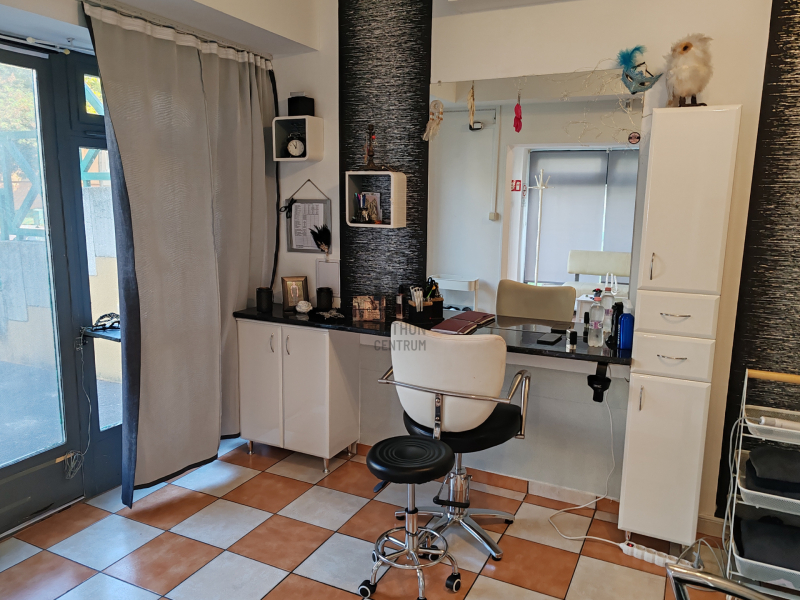 A 45 m2 ketté van osztva, egyik felében fodrászat, a másik felében masszőr tevékenység folyik.