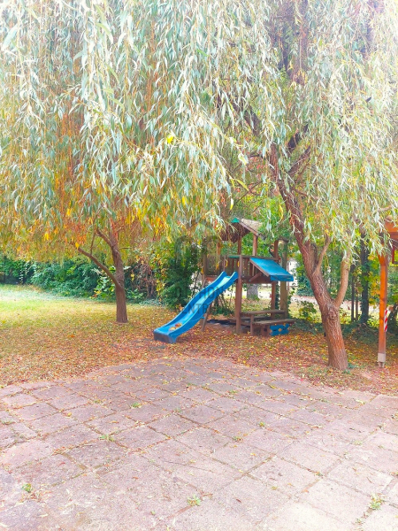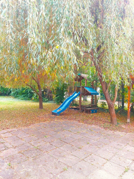 - hangulatos délnyugati terasz, a fűzfák árnyékában