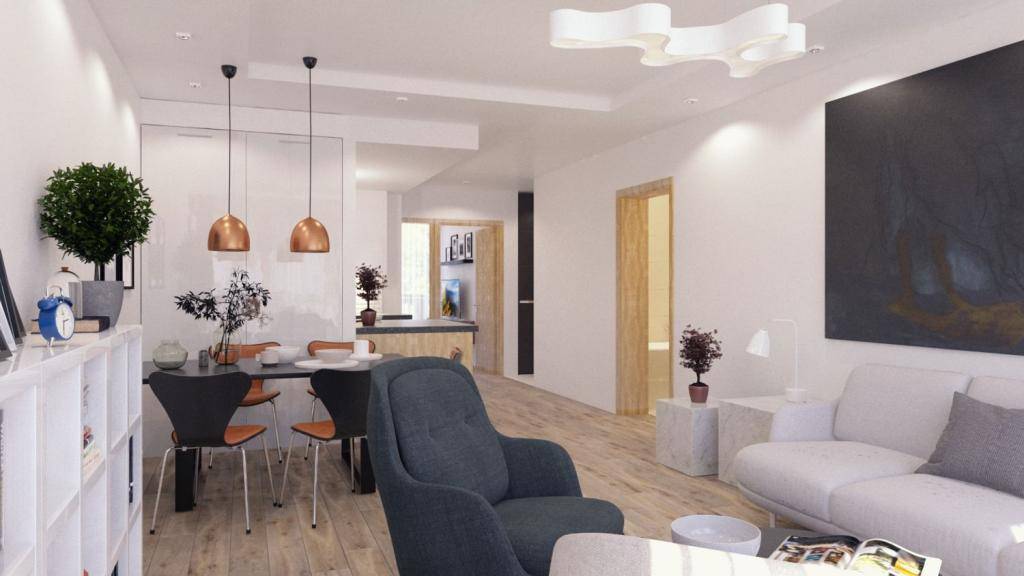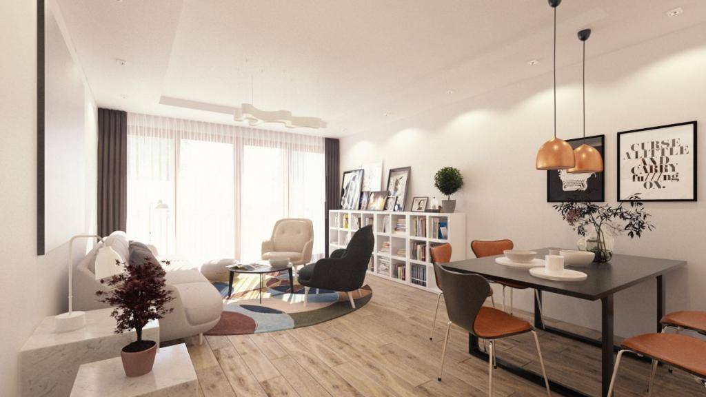 A funkcionális tervezésnek köszönhetően 2 hálószobát (15,86m2, 11,96m2), egy tágas 16,35m2-es nappalit, konyhát (6,70m2), étkezőt (4,34m2), fürdőt (6,31m2), WC-t (1,31m2), közlekedőt (6,77m2) és egy tágas teraszt ( 9,41m2) alakítottak ki.