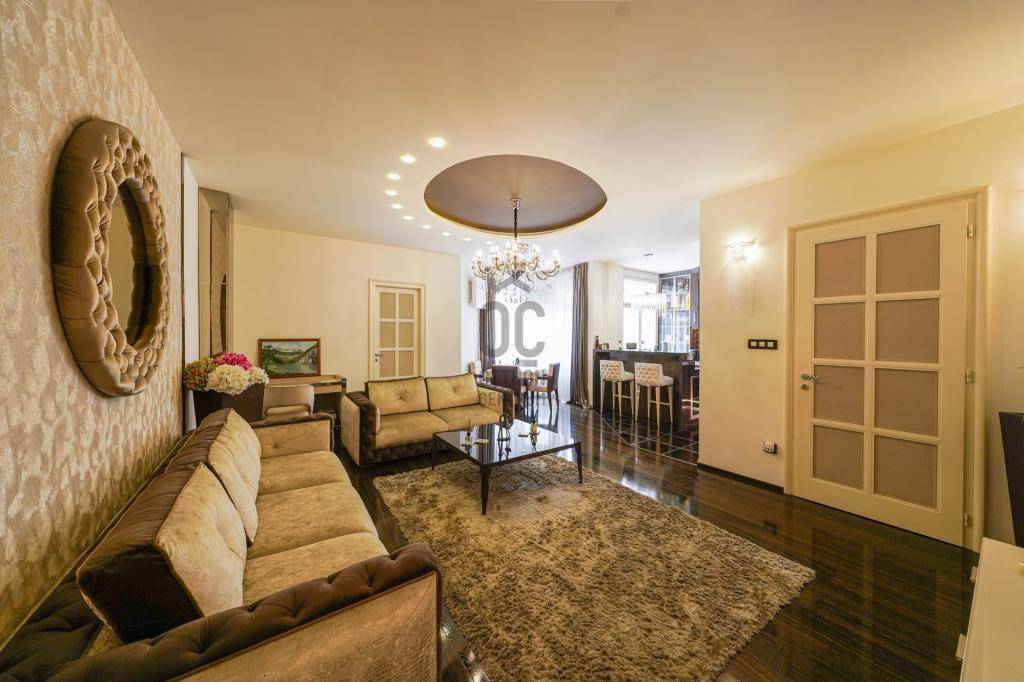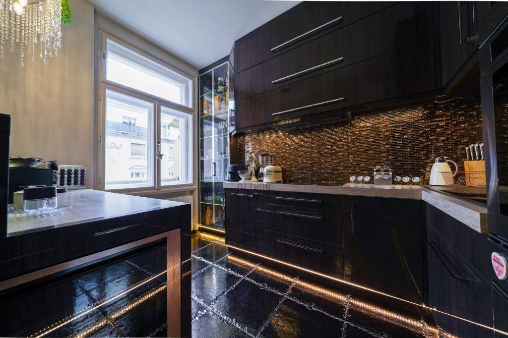 A lakás világos, nagy belmagassággal rendelkezik, így a napfény minden szegletét beragyogja, és a LED hangulatvilágítás és az exkluzív kristály csillárok még inkább fokozzák a kellemes atmoszférát.