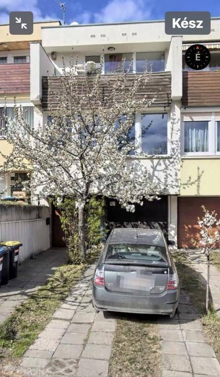 Külön kényelmet biztosít: az előkert autóbeállóval (mindez a garázs mellett), a hátsó kert, kb. 40 m², hangulatos pihenőtérrel és fészerrel – ideális családi, baráti összejövetelekhez.