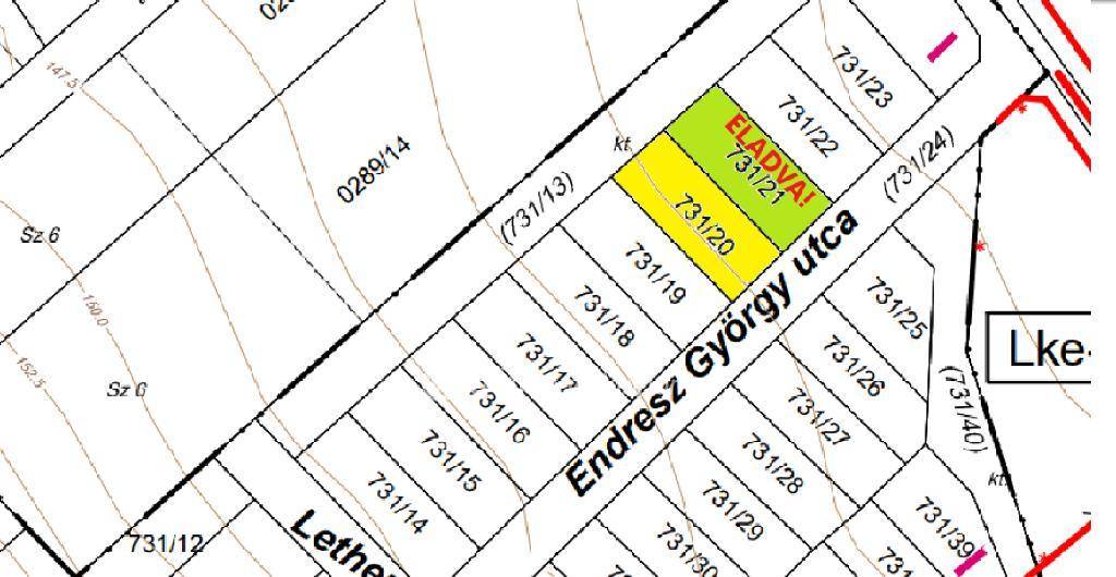 A hirdetési képek között levő térképvázlaton az eladásra kínált ingatlan sárga színnel van jelölve, a zölddel jelölt már ELKELT.
