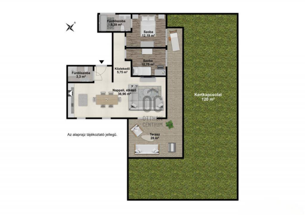 - 28nm terasz + 120nm sajáthasználatú kert;