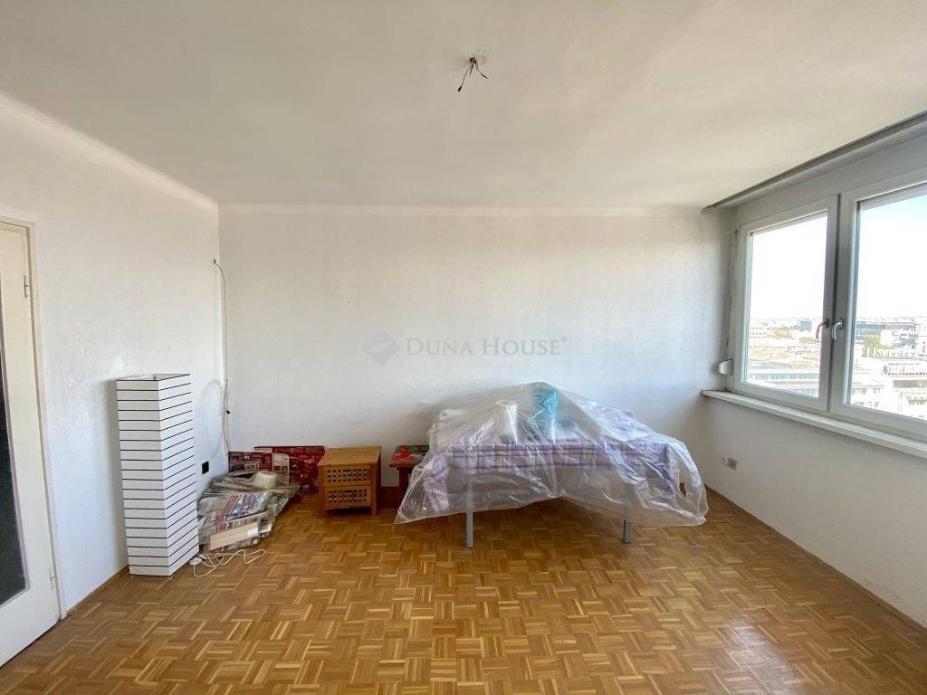 Eladó Budapest 13. kerületében, a Váci úton, 12 emeletes toronyház 7. emeletén, egy 44 nm-es, 1+1 félszobás, felújítandó lakás, csúsztatott zsalus házban, új nyílászárókkal, városi panorámával!A felépítmény az 1980-as években épült, földszintjén üzletek, felette további 11 szinten pedig lakások találhatók. A társasház két lépcsőházból áll, összesen 135 albetéttel, és több lift is szolgálja a lakók kényelmét. Az elmúlt években felújítás történt: modernizálták a liftek hívópaneljeit, kicserélték a lépcsőházak bejárati ajtajait, valamint új ablakokat építettek be, amelyek egyben jobb szellőzési lehetőséget is biztosítanak.A lakás zárt folyosóról közelíthető meg. Az ingatlan 44 m²-es, elrendezésében egy szoba, egy félszoba, konyha, WC, kamra, közlekedő, beépített gardróbszekrény és fürdő található. A félszoba a nappalin és a fürdőn keresztül is megközelíthető. Keleti tájolásának köszönhetően világos, ablakából városi panoráma nyílik.A nyílászárók korszerű, hőszigetelt üvegezésű műanyag ablakokra lettek cserélve, redőnnyel felszerelve. Ezen felújítást leszámítva a lakás az eredeti, építéskori állapotát őrzi. Az elektromos hálózat alumínium vezetékekkel szerelt.A fűtésről és a használati meleg víz-ellátásról a távhő gondoskodik. A közös költség 10 000 Ft.Az ingatlan tulajdoni lapján jelenleg több teher szerepel, ezek törlése folyamatban van. Hitel igénybevétele esetén az ügyintézés legkorábban 2025. november 1-jétől indítható. Ennek következtében hitellel vásárló vevők az ingatlant legkorábban 2026. január 31-én vehetik birtokba, és ekkortól kezdődhet meg a felújítás.Tekintse meg és tegyen rá ajánlatot!