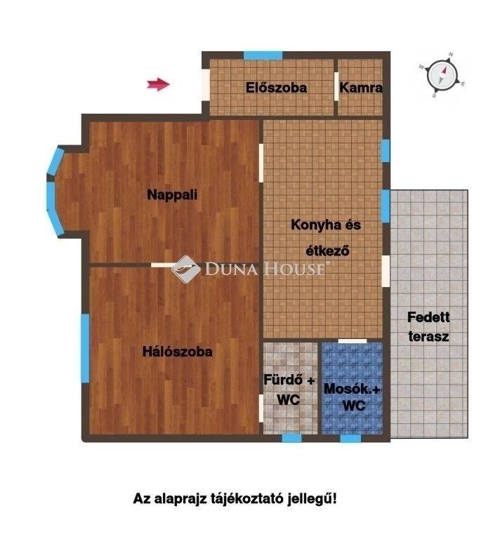 * étkező-konyha (18 m²), innen nyíló háztartási helyiség WC-vel (4 m²)