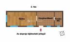 * hálószoba, melyhez zuhanyzós fürdőszoba és WC kapcsolódik (3,5 m²)