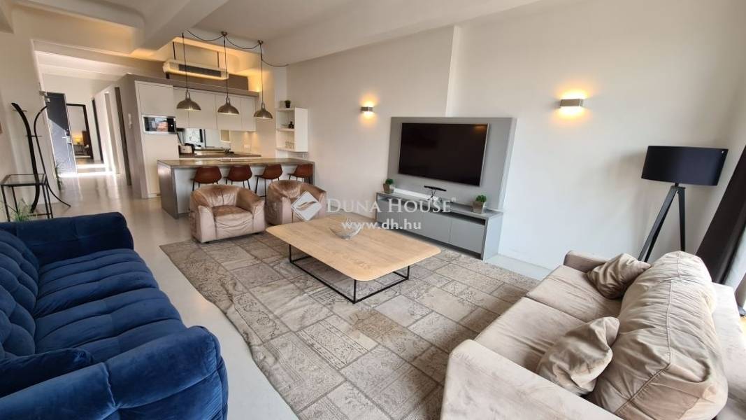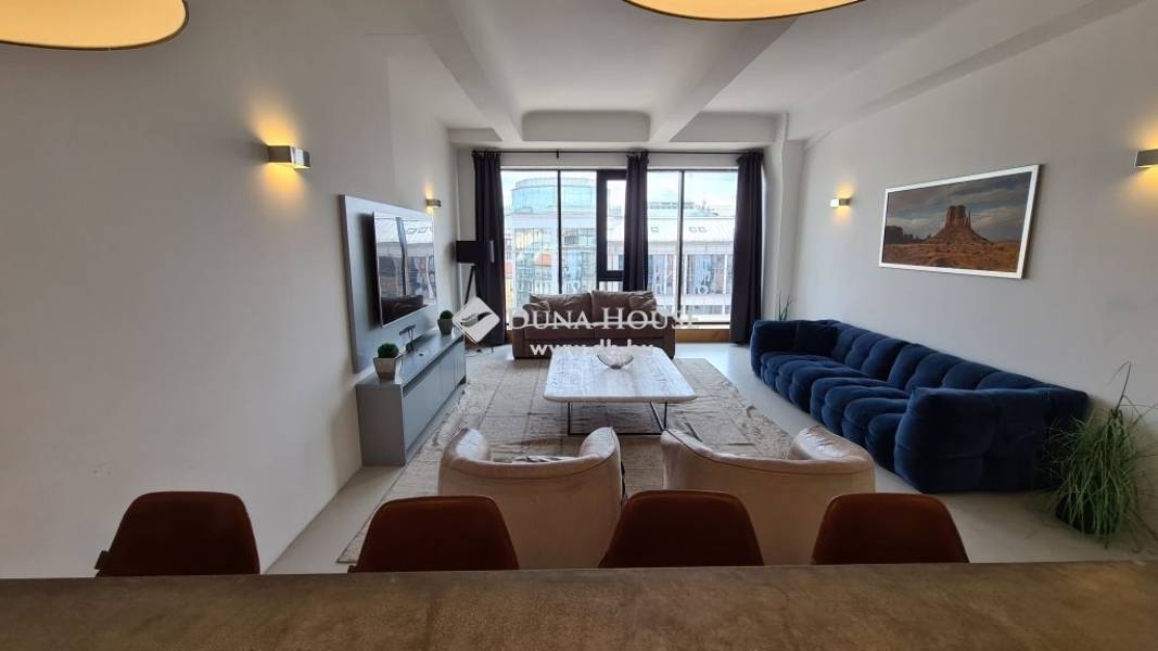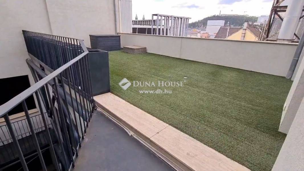 A hirdetésben szereplő képek, és videó a 101 m²-es lakás felvételei, 31 m²-es terasszal, pazar kilátással az Astoriára és a Gellért hegyre.