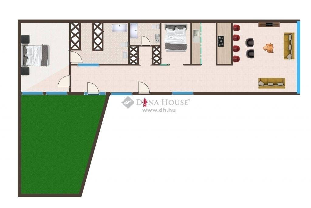 A lakásban megtalálható egy amerikai konyhás nappali, egy hálószoba, egy hálófülke, két fürdőszoba tusolóval, egy gardrób, és két beépített szekrény. A nappaliban faltól falig üvegen keresztül csodálhatjuk a városi panorámát, benne bukó-nyíló ablakokkal és árnyékolókkal.