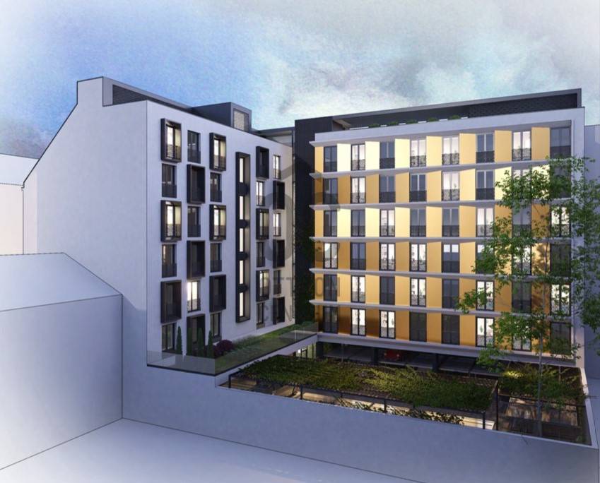 Bővítés esetén 3651 m2-re bővül a hasznos terület. 70 db apartman kerülne kialakításra. A parkolók száma 17+17 (parkológépen). Az első emelethez tetőkert csatlakozna, így 163 m2 zöldfelülettel rendelkezne az ingatlan.
