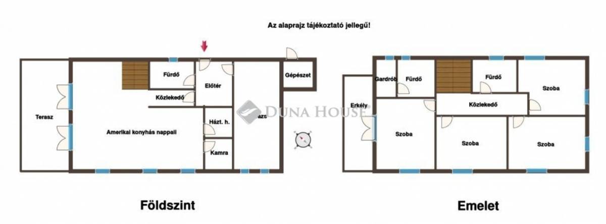 A földszinten található egy hatalmas, napfényes amerikai konyhás nappali, innen nyílik a 20 m2-es terasz. Ezen kívül ezen a szinten található egy kamra, háztartási helyiség, és egy fürdőszoba. A garázs 20 m2, melyben kényelmesen elfér egy nagyobb autó, az ingatlanba nyílik közvetlenül. Plusz egy autóbeállási lehetőség van az udvaron. A gépészet kívülről közelíthető meg.
