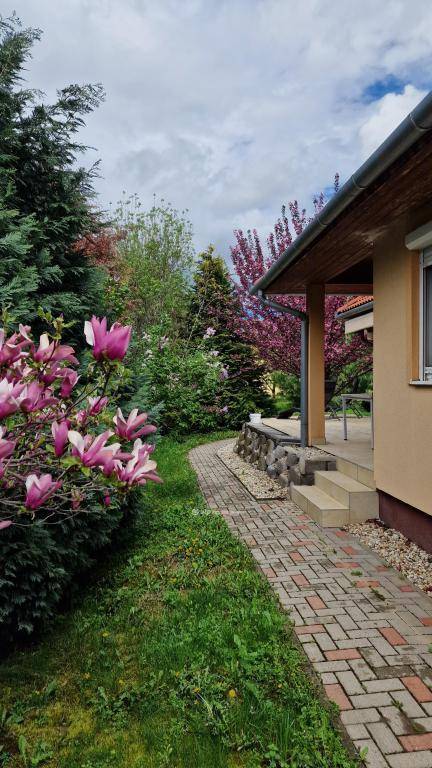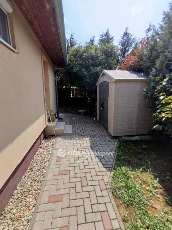 Csak a nappali+konyha rész 43 négyzetméter. Az innen nyíló terasz 14 négyzetméter. 2003-ban épült, kiváló állapotban van. 2 wc, 2 klímaberendezés van. A fürdőszobában kád és tusoló is van. A kényelmet még fokozza a mosó és gardróbszoba, a kamra, és a hobbi helyiség. Minden nyílászáró műanyagból van redőnnyel, és szúnyoghálóval. A tetőtér nem beépíthető, viszont nagy tároló lehet, mert fel lehet állni a magassága miatt. Az udvarban van egy műanyag kerti tároló ház a kerti eszközöknek. A házban riasztó, és kamerarendszer ügyel a biztonságról. Igény esetén teljesen berendezve is eladó. Budapesti 2 szobás garázsos lakás cserealapot képezhet a megegyezésben.