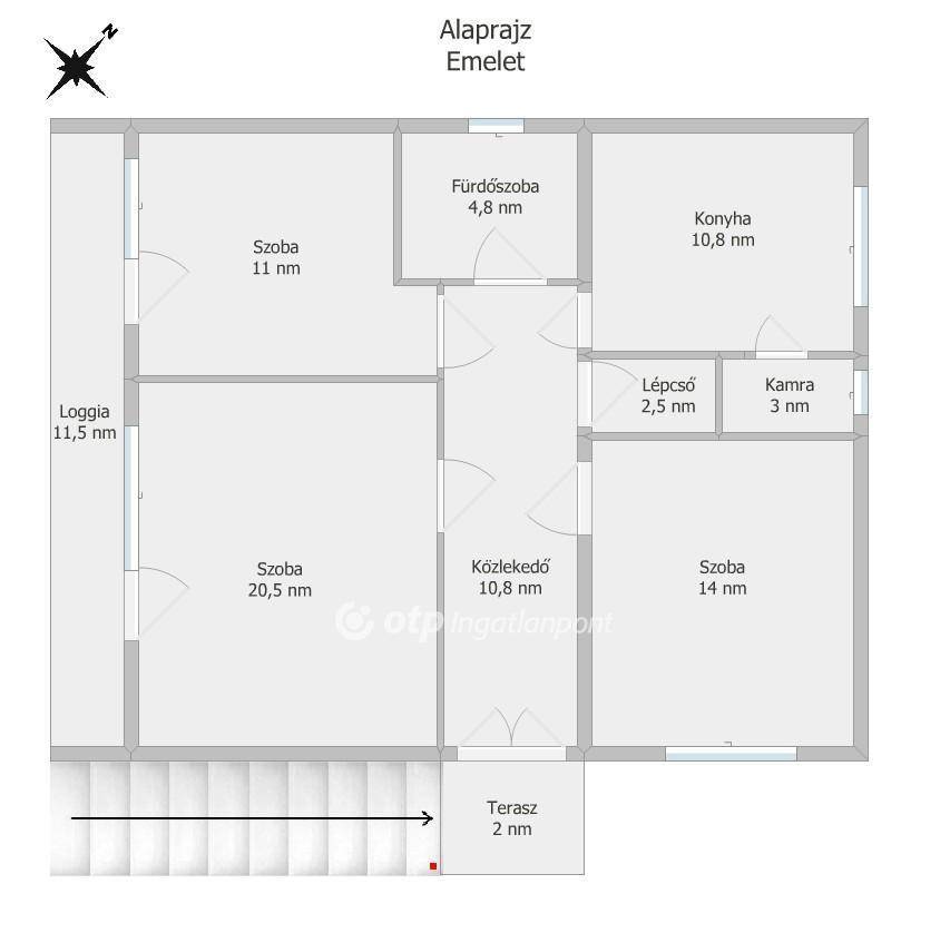 Külső megközelítés: felső szint külön bejáratú, külső lépcsővel