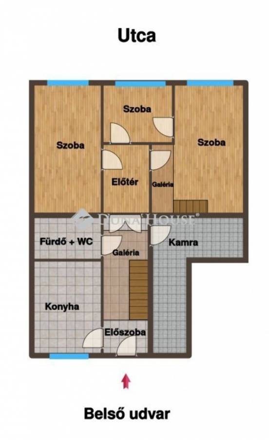 Eladó 2,5 szobás lakás Józsefváros szívében, közel a Kálvária térhez a Baross utcában.Frekventált elhelyezkedéssel eladó a Baross utcában egy 2,5 szobás, 2 galériás, földszinti lakásA kis lakásszámú társasház a múlt század elején épült, de szerkezetileg és statikailag hibátlan, esztétikailag viszont felújításra szorul. A lakás a társasház belső udvaros földszintjén található, ahol ugyan az udvar közös, de lényegében csak a földszinti 4 lakás lakói használják. A lakás abszolút csendes, a konyha ablaka a belső udvar felé néz, a 3 szoba ablakai pedig egy mellékutcára, ahova csak az ott lakók hajtanak be, parkolás céljából. Az ingatlan korábban részleges felújításon esett át, így jelenleg egy festést követően - lakható/kiadható állapotban van, igény esetén azonban felújítandó. A nagy belmagasságnak köszönhetően akár nagyobb területű galériák is kialakíthatók, növelve ezzel az ingatlan lakóterületét.Közös költség: 19.000 Ft, 1/1 tulajdonú.Lokáció szempontjából a lehető legideálisabb helyen van. Sétatávolságon belül több busz-, troli-, és villamos megálló is található ( köztük a 4-6 -os ), de metró is elérhető közelségben van. Szinte minden típusú üzlet/bolt van a környéken, szabadidő tekintetében pedig a Corvin pláza vagy a Kálvária tér és a Muzsikus Cigányok parkja lehet jó választás. Kultúra vonatkozásában mindenképp érdemes megcsodálni a mellette lévő épület falán található Vuk tűzfalfestményt.Családoknak és befektetőknek is egyaránt kiváló választás lehet.Jöjjön el, nézze meg és tegyen ajánlatot!!!