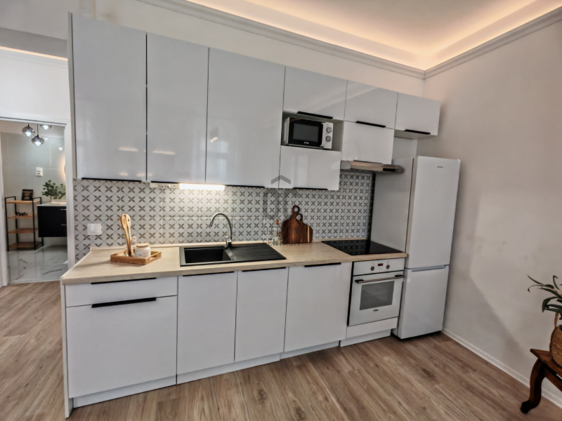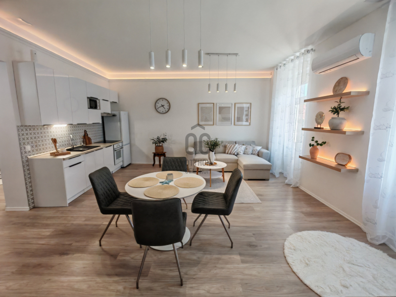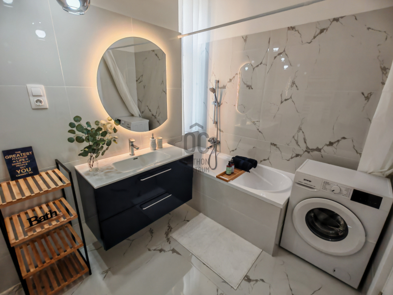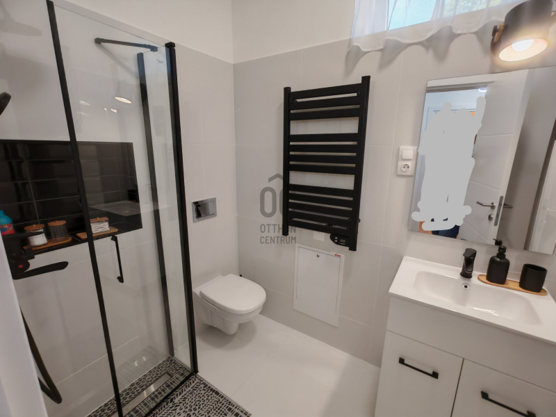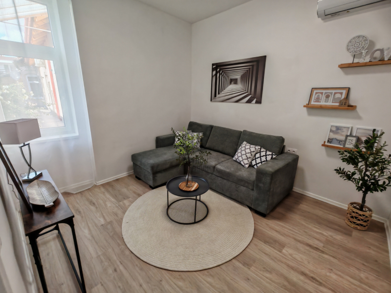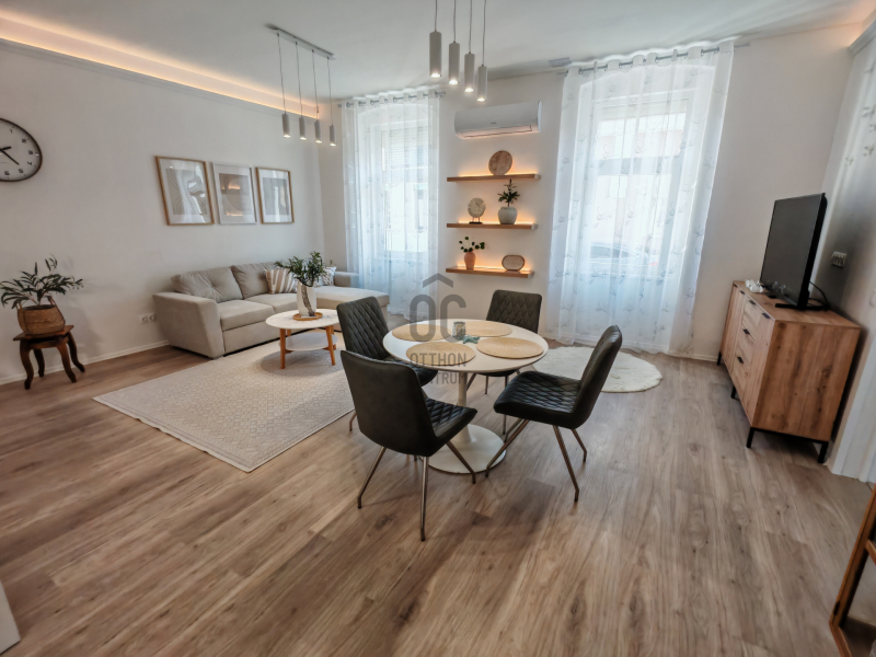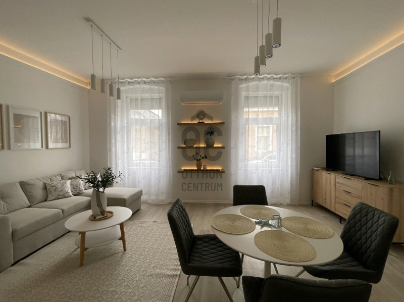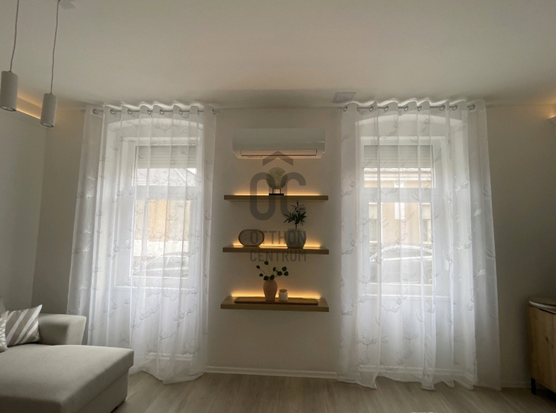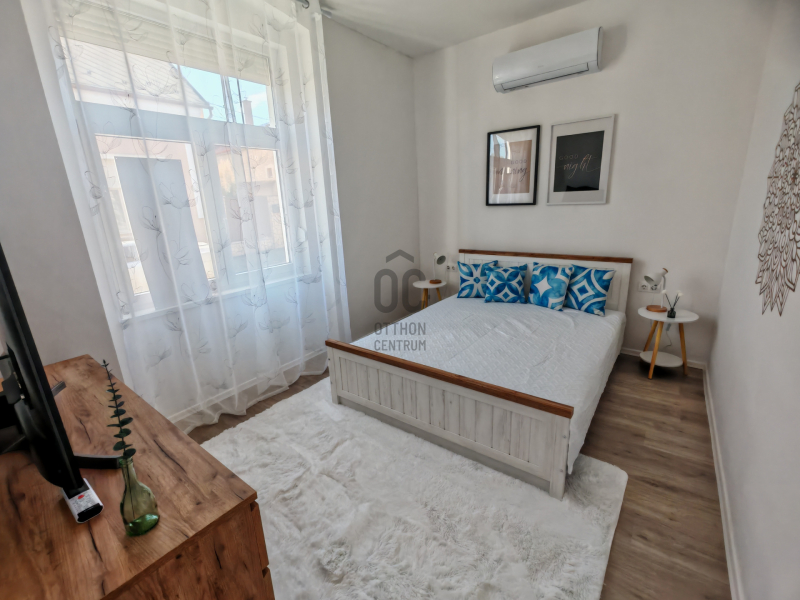 A lakás egy négyes társasház része, kívül-belül minden részletében megújítva, világos és tiszta. Teljesen bútorozott és gépesített, az összes berendezés vadonatúj és még nem használt (hűtő, sütő, mosogatógép, mosógép, mikró, stb.). Az ár a teljes berendezést is tartalmazza – az új tulajdonosnak már csak be kell költöznie.