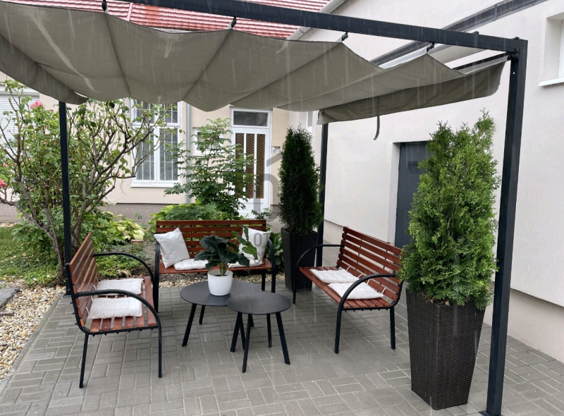 • Bútorozott pergolás terasz – tökéletes reggeli kávéhoz vagy esti borozáshoz