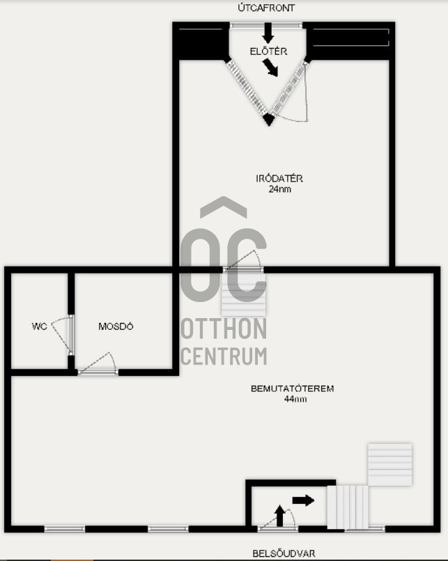 Az ingatlan két nagyobb helyiségből áll, bejárata az utcára nyílik.