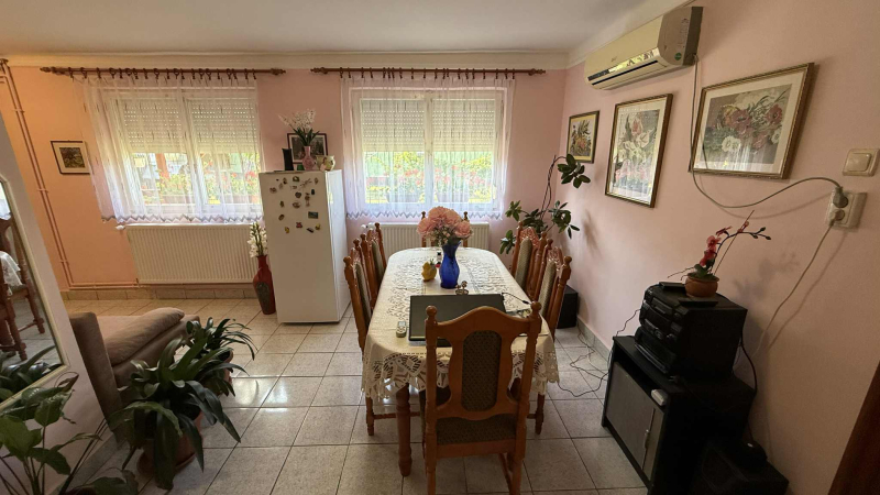 Központi fűtése van gáz illetve vegyes tüzelésű kazánnal,az étkezőben pedig Klíma is található.