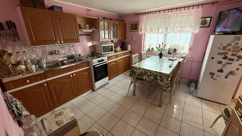 Az ingatlan három szobás,jó kialakítású,tágas,világos étkezővel és konyhával.