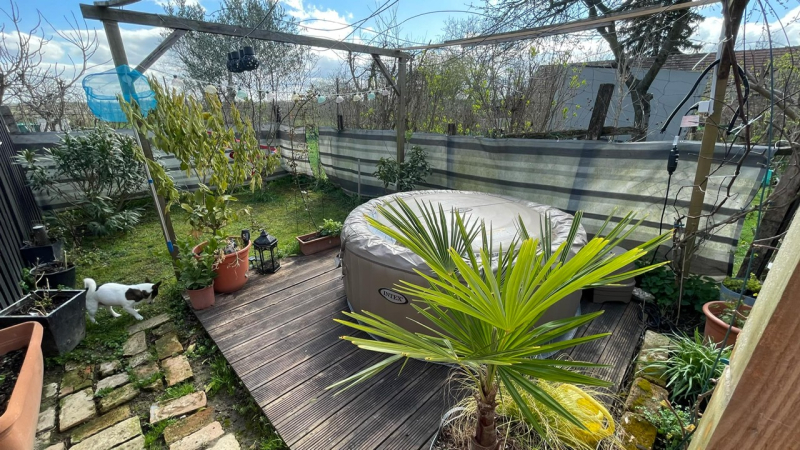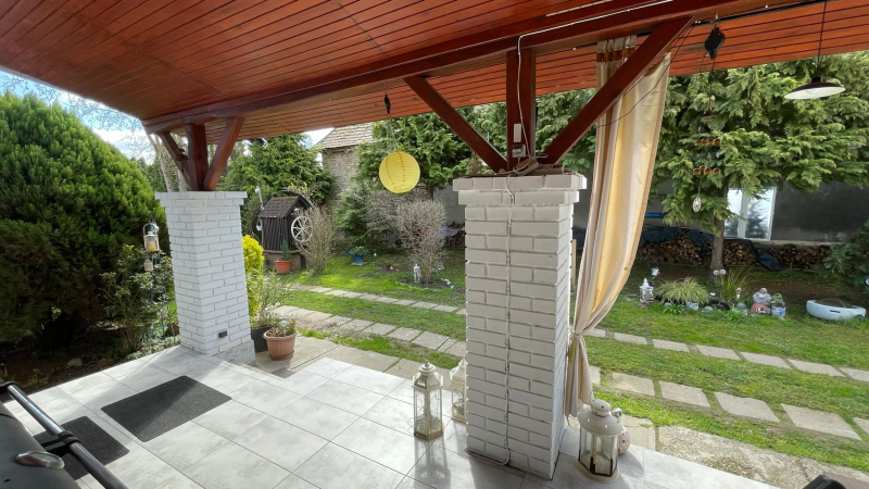 Kertre néző,fedett terasz,parkosított udvar,teljesen körbekerítve!