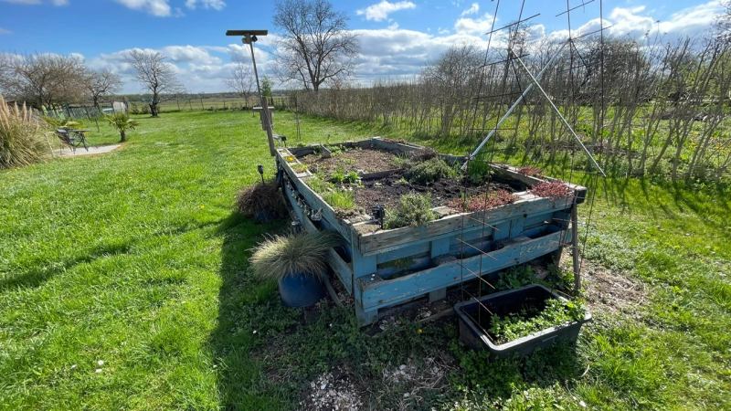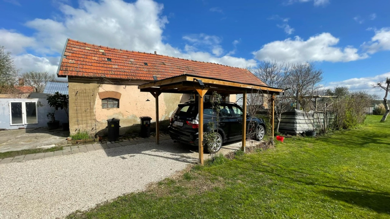 Kert kút,nagy melléképület,fedett autó beálló és.....nyugalom:)