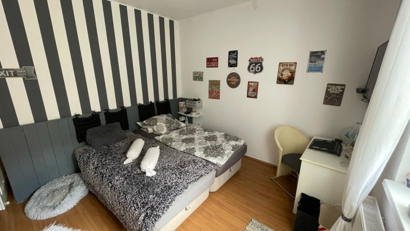 Négy tágas,világos szoba,amerikai konyha étkezővel,mosókonyha,vendég wc és fürdőszoba található,így akár nagyobb család is bőven elfér!
